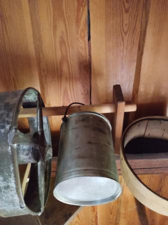 En metall hink troligtvis gjord på aluminium.
