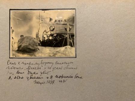 Texten: Återigen kom "Michel" nära styrbordssidan igen, och innan han kunde sniffa ut det, dödades han brutalt. Jag var också ansvarig för det mordet. 19 augusti 1934. 21:30.