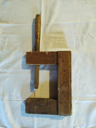 Träverktyg för trä snickeri. Använt för att klämma fast två ytor då man t.ex. limmar fast dem.