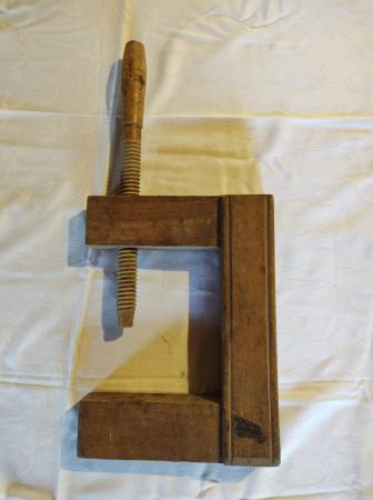 Träverktyg för trä snickeri. Använt för att klämma fast två ytor då man t.ex. limmar fast dem.