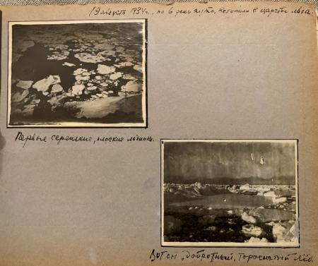 Texten i mitten till vänster: de första grå, platta isflaken.